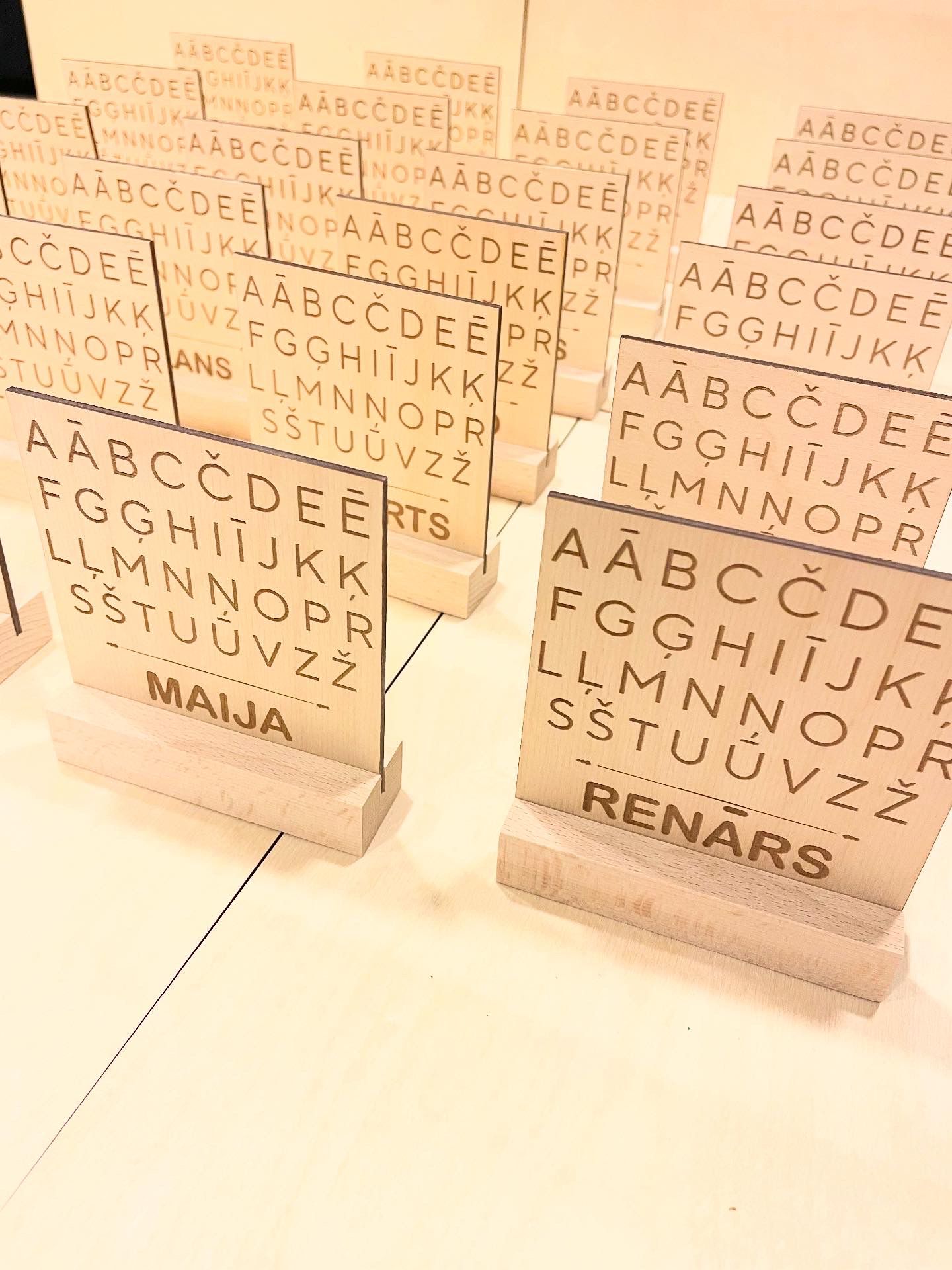 Personalizēts mini alfabēts ar statīvu pašiem mazākajiem! Palīdzēs apgūt burtus mācību pirmsākumos, kā arī ātrāk palīdzēs apgūt bērna vārda rakstību!